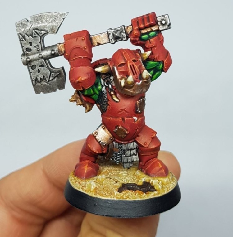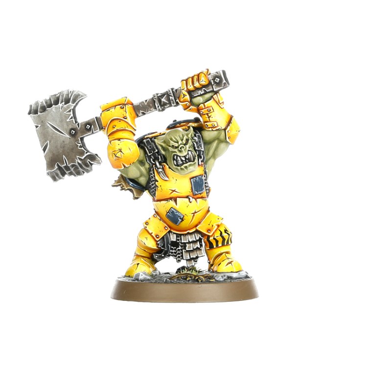 With a lick of paint, our Orruk is complete and the joins are almost invisible to the untrained eye! It looks like he was always destined to have a helmet and choppy choppa.