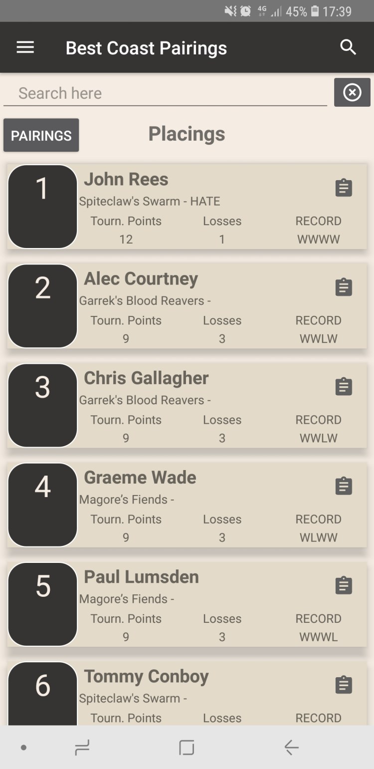 A very tough 2nd game that I was able to pull back from the jaws of defeat with a little bit of luck and correct card chucking. Still Paul played and adapted extremely well but Skaven (Skinks) stood triumphant at the end. The Grand Clash final was all that awaited.