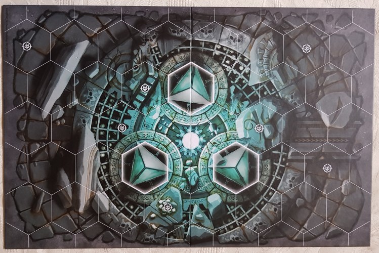 Normally I use the Cog board from the Shattered City board pack but as he was probably running Shardgale plus all the other guaranteed damage cards made the lethal hexes too much of a risk. The 3 single blocked hexes allow me to obscure valuable rats and mitigate the range of the Farstriders. It also has decent edge hexes for length-ways setup. I call it the Pyramid board.