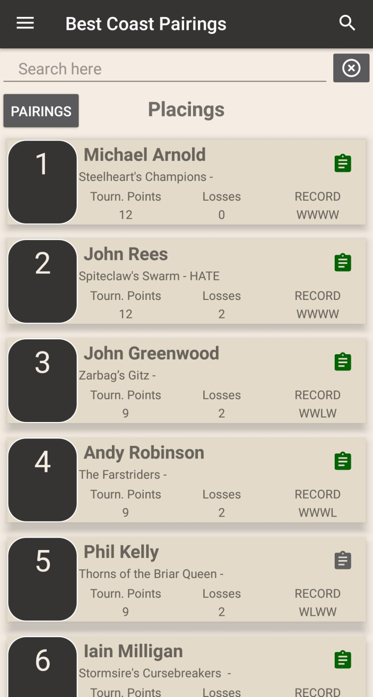 After 3 rounds I had won on glory difference! A special thanks goes out to my 3 opponents who were a great joy to play against and put up with my overly tired state. Tough with sneaky plays but also super enjoyable to face.