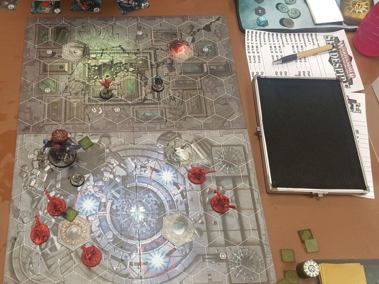 Paul and his Ironskull’s Boyz were my round 2 pairings. Winning boards he placed the Katophrane’s Reliquary while I placed the Ruptured Seal wide.