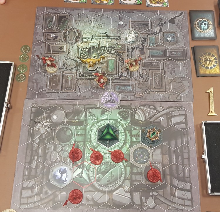 Game 2 had me win boards. Justin place the Katophrane Reliquary so I set the Amber Catacomb in a diagonal configuration.