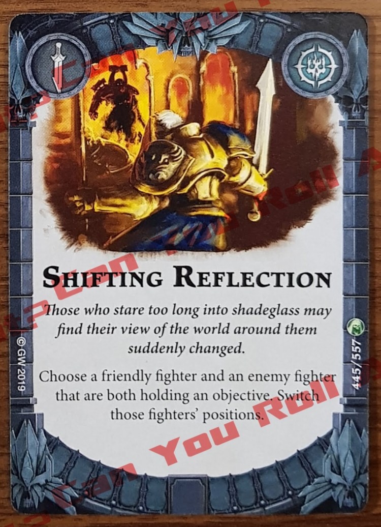 Shifting Reflection is really interesting. Swap a friendly fighter and an enemy fighter holding objectives from anywhere on the board. A general thing is to swap a weak or buffed up fighter for your opponent’s leader or key fighter. Also hilarious to send over a friendly fighter then equipping the Earthing Stone. It doesn’t make the top 10 as it requires your opponent to be interaction with objectives so otherwise means you need to invest in setting it up.
