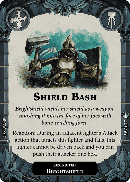 When inspired Brightshield gets Furious Parry. This is a reaction attack that occurs when an enemy fighter fails their attack action. Coupled with her 2 block this combo makes her a reliable fighter that can easily punish foes who get too close.