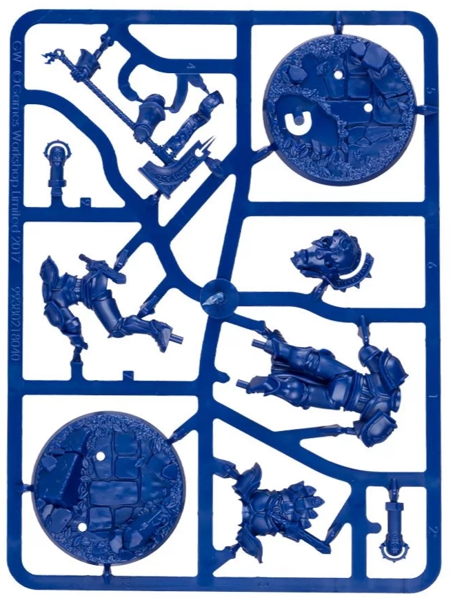 The sprues are coloured in blue plastic to compliment the red of Garrek’s Reavers. These miniatures go together fairly easily with the most complex part involving assembling Severin’s body. Otherwise these models are a joy to build as they are to paint. Special mention goes to the bases with my favourite being Obryn’s fallen Sigmarite statue head.