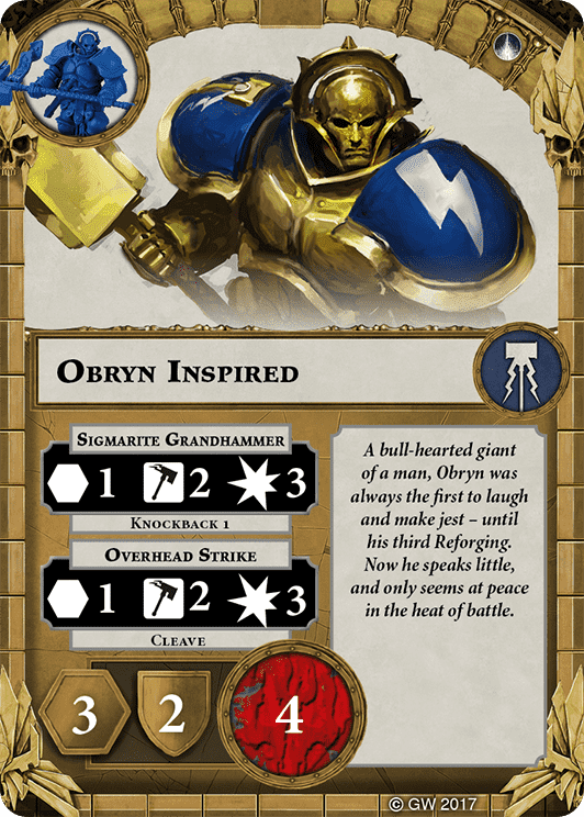 Once inspired Obryn goes up to the typical 2 block profile. He also gains the option for a cleave attack making him that much deadlier.