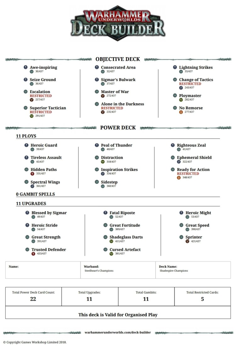 As always my warband reviews come with decklists! First I’ll do a Shadespire only deck then another featuring all available cards. If you want a deeper guide for the warband check out my warband breakdown article dedicated to my Steelheart’s Champions deck of old.