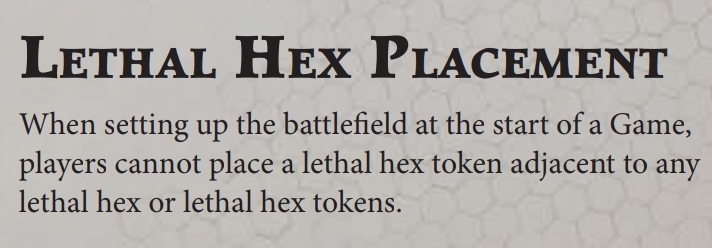 Another change is that lethal hexes cannot be placed within 1 hex of each other. This is a small but needed change as it helps deal with particularly problematic and negative board setups. It would have been ideal to be included in the core rules but I’m more than happy to see it implemented already.