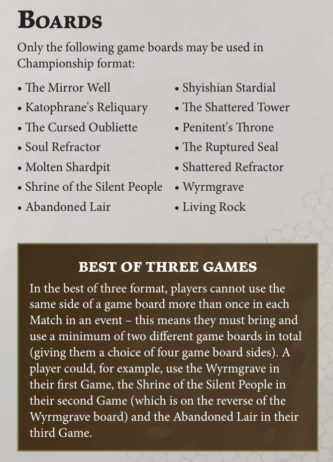 I don’t like boards being rotated out but I can see why they have been. They’re no longer available and tied to Shadespire. I still would have liked the Shattered City board pack to remain tho.
