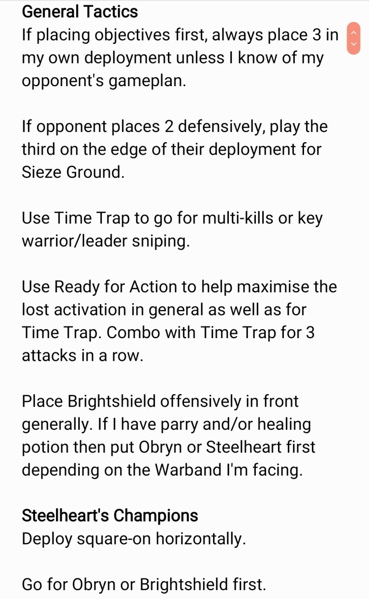 In regards to writing notes, the above image should help. This is what I wrote for my original Steelheart’s Champions back in Shadespire! This is something I picked up from fighting games (Street Fighter). I start with general tactics then delve into specific matchups. You get as much as you put in but I find notes a useful resource that I read outside of gaming time.
