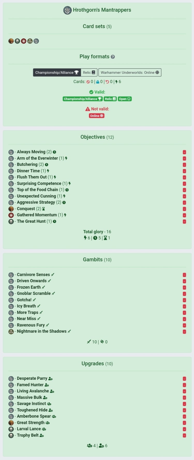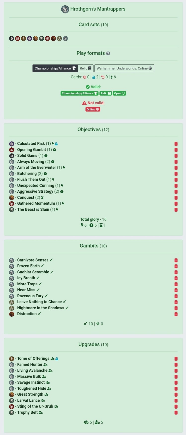 Special thanks goes to Underworldsdb.com! As Games Workshop released all the cards during the week I now have an up-to-date deck builder to use for this. It’s a lifesaver.
