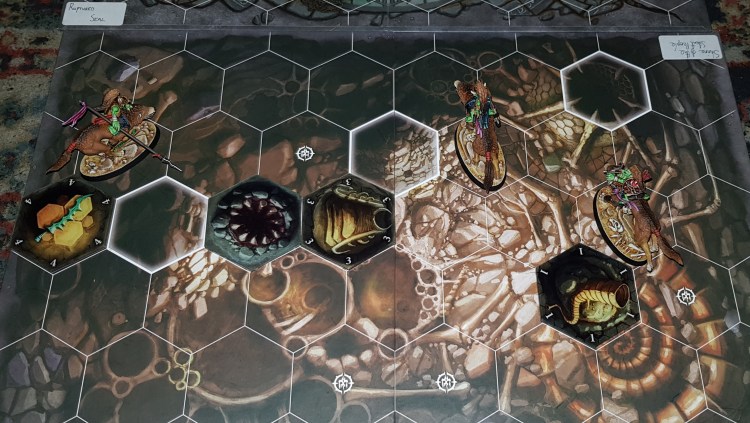 Finally you can use feature tokens to preempt your opponent trying to make starting hexes safe. As you can’t place feature tokens within 2 hexes of each other this creates a 2 hex bubble of denial agaisnt other feature tokens. It’s more difficult but can really mess up your opponent’s plans if pulled off correctly.