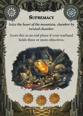 If you’re playing against an objective warband (such as Zarbag’s Gits and Thorns of the Briar Queen), you want to ensure you play ploys which disrupt their scoring as late as possible, but before they can score cards from it. Against Grymwatch, this means you want to use Mischievous Spirits when they are on two or more objectives, and it would deny either a “Path to Victory”, a “Supremacy”, or a “Tactical Supremacy” in the end-phase. When playing against warbands such as Sepulchral Guard, who can move two fighters but they are very slow, it may be worth sacrificing the 2 glory which they will get for being on 3 objectives for Temporary Victory, to deny the much higher glory they can score in an end phase through the aforementioned cards.
