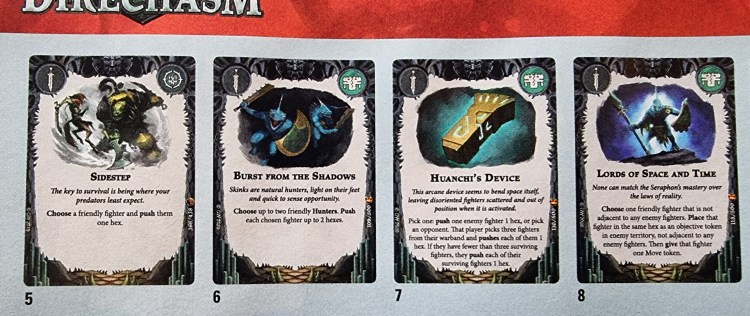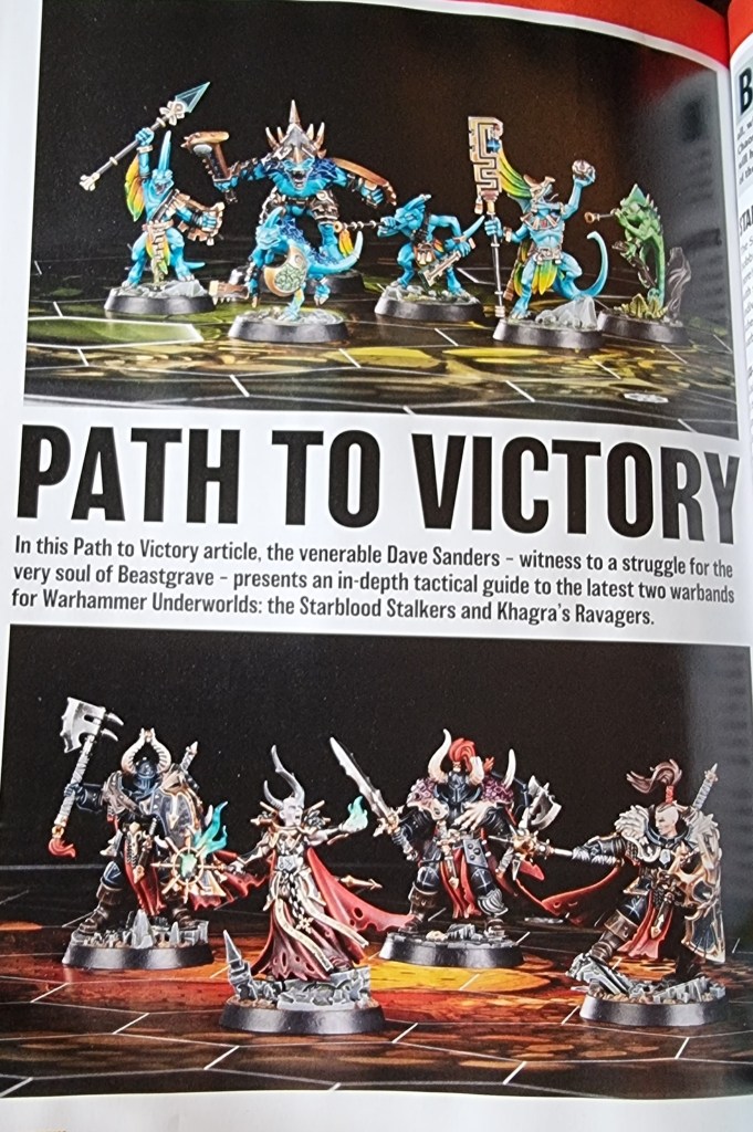 Welcome to an impromptu and special article! Today I received my monthly White Dwarf as I’m a long-time subscriber. Each month has a special articles dedicated to Warhammer Underworlds called Glory Points and Path to Victory. I usually cover this as a simple post on my Facebook and Twitter pages. This month’s article goes over how to best use the new Direchasm warbands: Khagra’s Ravagers and the Starblood Stalkers. Due to likely delays, the White Dwarf is filled with new cards, both faction and universal cards, from the Starblood Stalkers expansion. Without going any further, here’s what the White Dwarf shows!