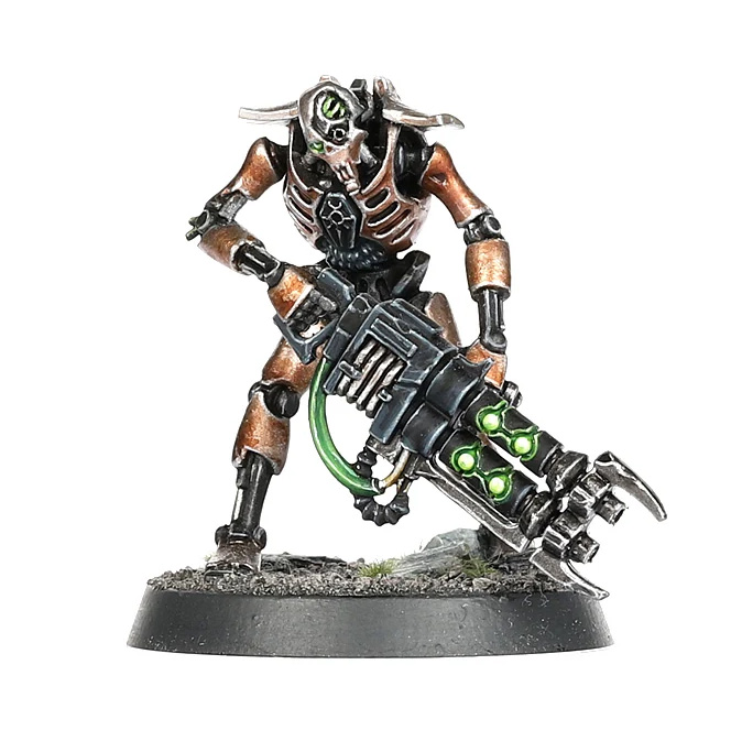 The Necron Royal Warden and Necron Warriors are all movement 3 with a wounds characteristic of 2 for the Warriors and 3 for the Royal Warden. Finally, they all defend on a single block. The Canoptek Scarab Swarm are movement 5 with Fly and have a wounds characteristic of 3 while defending on a single dodge. They are slower (sans the Canoptek Scarab Swarm) but make up for it with decent durability and Gauss firepower.