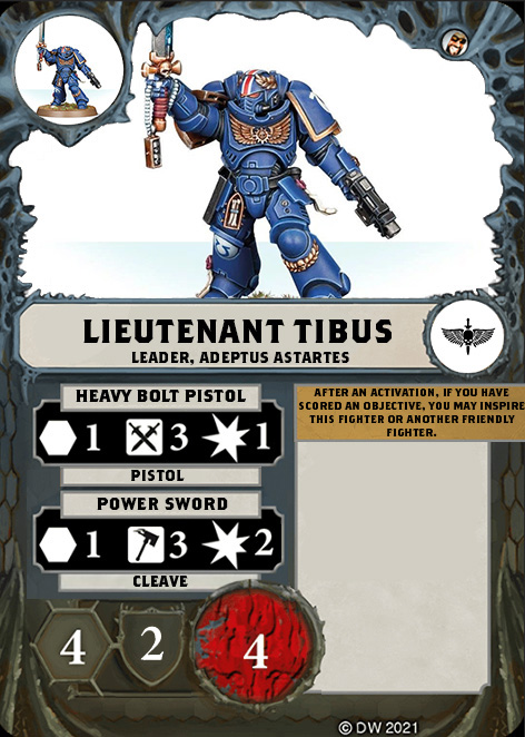 Squad Invictor inspire each time a mission objective is completed, representing their tactical and ordered nature. Inspired fighters gain various buffs depending on the individual fighter and weapon improvements such as +1 damage to the Power Sword for Tibus Inspired.