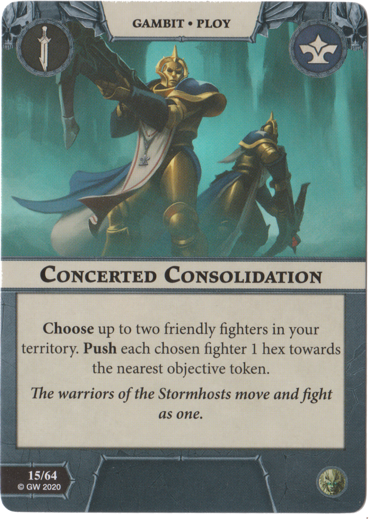 Concerted Consolidation is an interesting Sidestep. Up to 2 friendly fighters in your territory can be pushed 1 hex each towards the nearest objective. Use this to secure your end phase and any objective holding objectives in general.