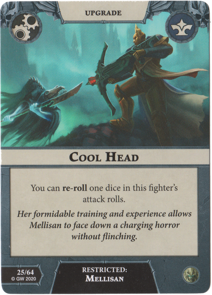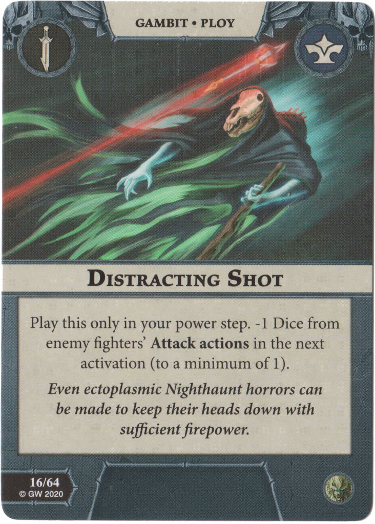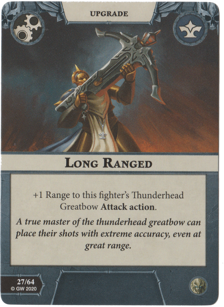 Distracting Shot causes -1 attack dice to your opponent in their next activation. It’s alright but the bigger question is how do you play this if all your fighters have already shot their Thunderhead Greatbows? It’s a minor funny thing that I always like to point out.