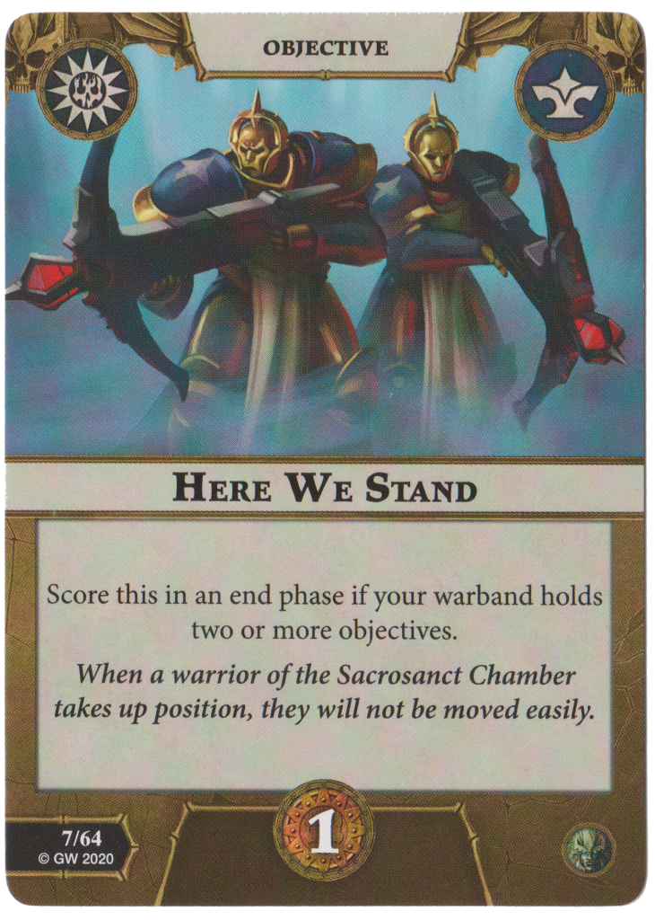 Stalwart Defence is once again just fine. +1 defence to friendly fighters holding objectives in your opponent’s activation.