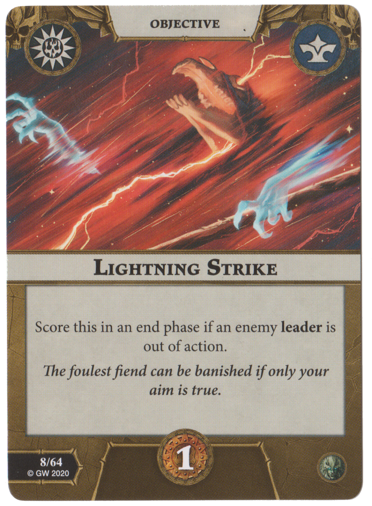 Lightning Strike (not Strikes) is faction Assassinate. 1 glory for having an enemy leader out of action. Alright but not reliable.