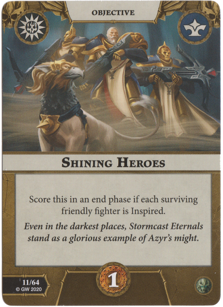 Shining Heroes is 1 glory for having all your fighters inspired. Just too hard to score consistently with the tight inspire conditions of the Stormcast.