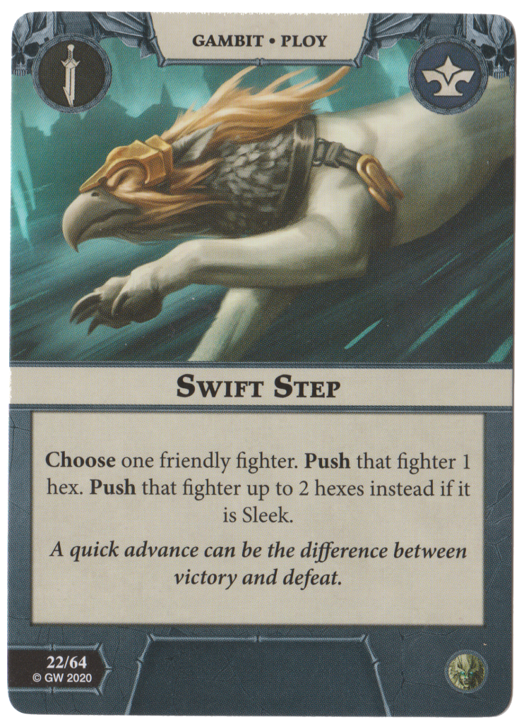 Swift Step is a buffed Sidestep. Push a Stormcast 1 hex or Sleek up to 2 instead! Great for objective grabbing and mobility.