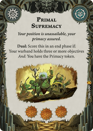 Primal Supremacy is great for Primacy Hold Objective players. Score 3 Dual glory for holding 3 objectives and having the Primacy token. Not that easy but there are now a lot of ways to get Primacy without even needing to kill.