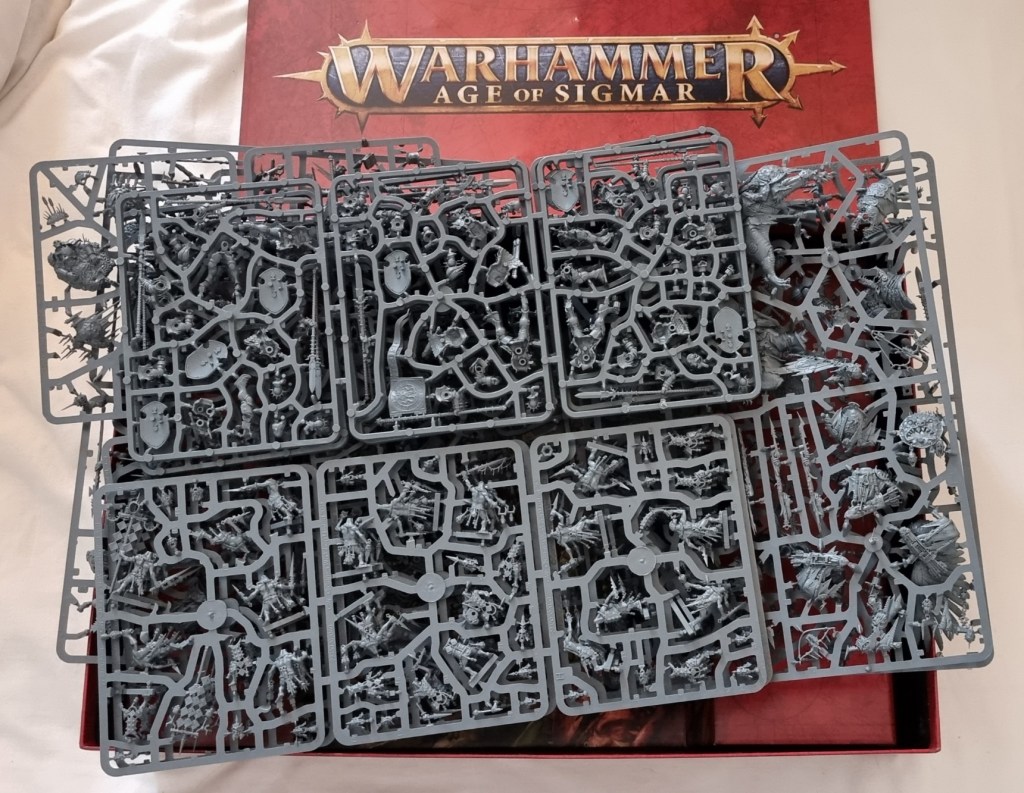 Points wise, the Stormcast clock in at 1,360 points whereas the Kruleboyz are 1,070. Even with the numbers advantage, the Orruks still fall short of the Stormcast sadly. Notably, the Stormcast models also have the option of assembling their battleline unit as a single unit of 10 models or 2 units of 5 models, making them much better towards starting an army as from the Dominion box you effectively get minimum 1 general and 2 battleline units. On the other hand, the Kruleboyz only have a single unit of 10 battleline troops which results in a more difficult start for a new player.