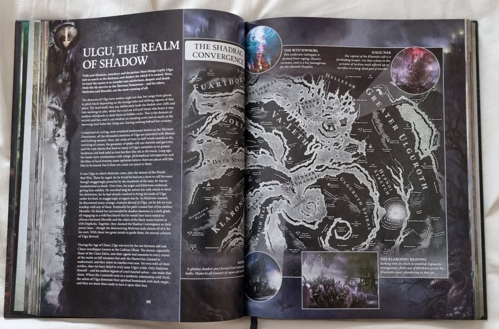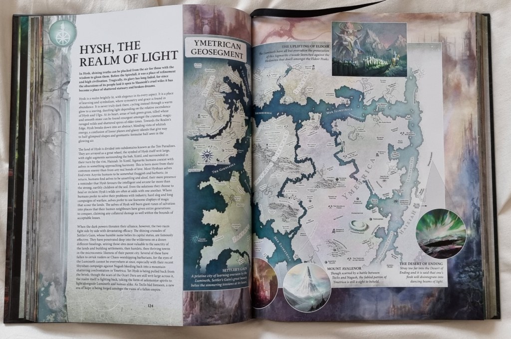 The narrative is a huge part of the book, taking up about 220 pages! It may seem excessive but I love how the lore of Age of Sigmar and the realms has evolved and deepened. The book covers everything from how the timeline started to how it has progressed. You get lots of in-depth narrative content with beautiful artwork. This all helps to really make the Age of Sigmar universe feel like a realised place with people and races fighting for an actual reason. Realms and cities are given life and the new maps are great for helping realise how deep each realm actually is. The new realm maps are a great improvement and feel like the ones which we used to get in Warhammer Fantasy.