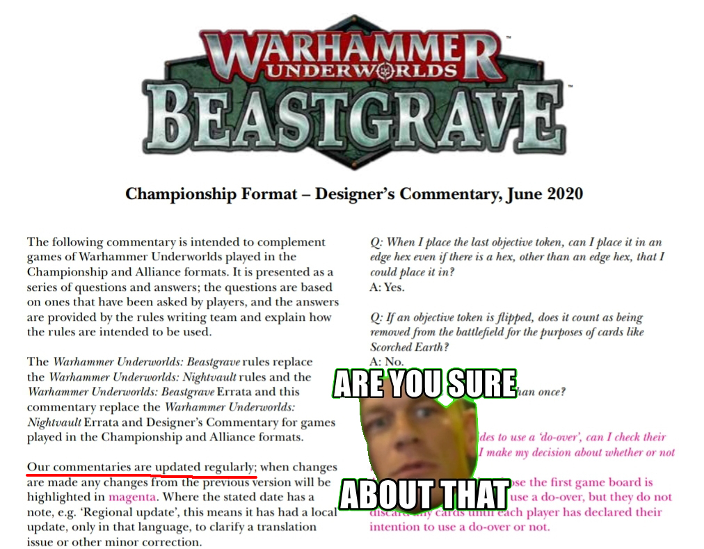 As I covered in my article on why Warhammer Underworlds needs a new FAQ, the June 2020 FAQ turned 1 year old. 1 year without an update is depressing as there are a lot of rules that need answering. I’m highlighting this just to spread the issues people have in regards to rules questions for the game as there are huge disagreements on stuff such as the timing of when the Primacy token is scored after an activation as well as other rules interactions. While this did not bring any community consensus, it did show there are a lot of rules questions that desperately need answering for clearer gameplay.