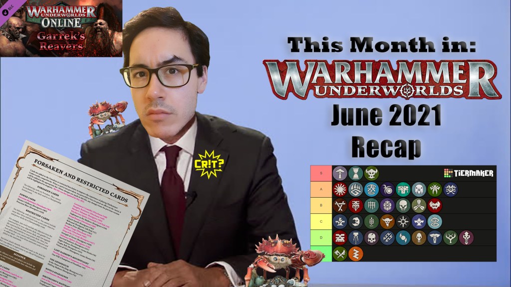 For the summary of my June: I had my Elathain’s Soulraid review, my previously mention quarter 2 tier list for Warhammer Underworlds, the Age of Sigmar Dominion boxed set review, my celebration of the Underworlds FAQ turning 1 years old, an article comparing Hunger and Primacy, my overview of the new FAR and erratas, then finally Crit ! Cast Episode 12 along with my usual slew of batreps on YouTube!