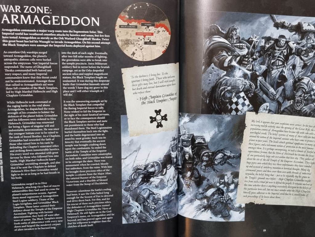 This codex supplement is actually packed with a mix of new and old artwork. It details historic and new crusades that the Black Templars have embarked upon over the many thousands of years since their inception. It is a great update and really brings out the feel of this Space Marine chapter while still honouring its links to Dorn and the past.
