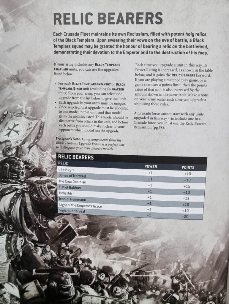 As covered in the Warhammer Community articles, you get a lot of new rules that overlap for both narrative and competitive play. I could talk for so long why I just love the relic bearers stuff alone, just so much fan goodness. Especially with the Holy Orb of Antioch! You get so many ways to mark out characters and sergeants as powerful dueling knights in their own rights.