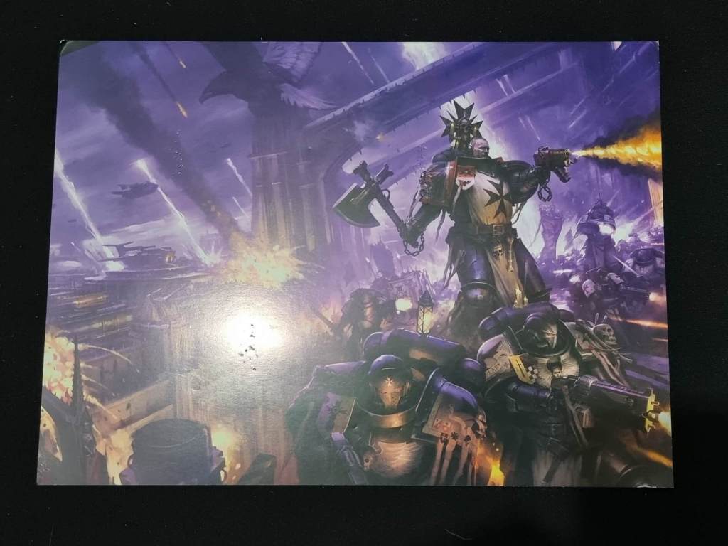 After getting through the sprues, you are greeted with an art card separator. The front shows off the Black Templar codex artwork whereas the flip-side is more new artwork featuring a Marshal cutting down some heretic foes!