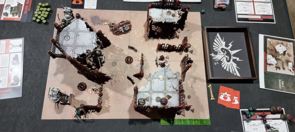 As mentioned, the tournament had 60 tables grouped into areas of 3 tables with fixed missions. These were usually 1 Octarius board, 1 Vertigus and 1 Chalnath or Nachmund board. Once again Warhammer World provided the gold standard for Kill Team terrain, with varied asymmetrical terrain that over clever and subtle buffs towards players who were the defenders.