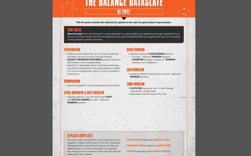 As for the new balance dataslate, only the chain activation rules and A Worthy Cause changes were in-effect.