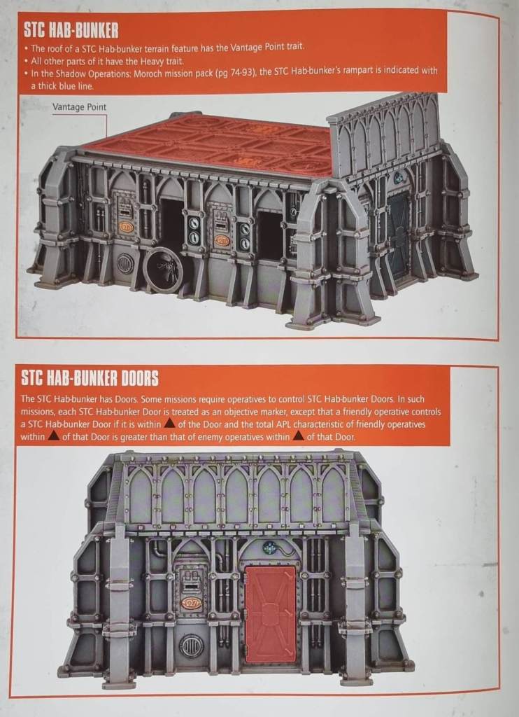 Terrain-wise you get a lot of selection from the new Fronteris terrain. I’m a fan of it to begin with and the pieces are quite big and take up a lot of the board. Their unique rules are also fun too. What I like is how stackable the terrain is. You can put the auspex shrine on the hab-bunker or landing pad. OR you can put the hab-bunker on the landing pad and the auspex shrine on top of the hab-bunker to make a truly tall terrain piece. It gives you lots of variations to play around with.