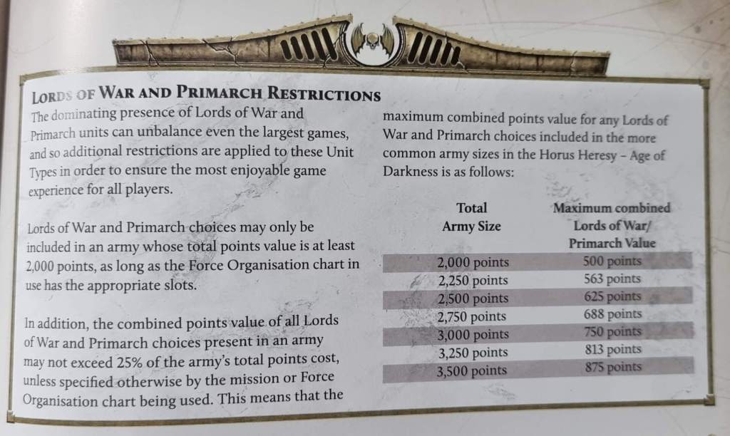 As for building armies, everyone (currently) has the same force orginisation chart with the listed points limits shown above. 2,000 points is my favourite but I do know lots of people play at 3,000 as well.
