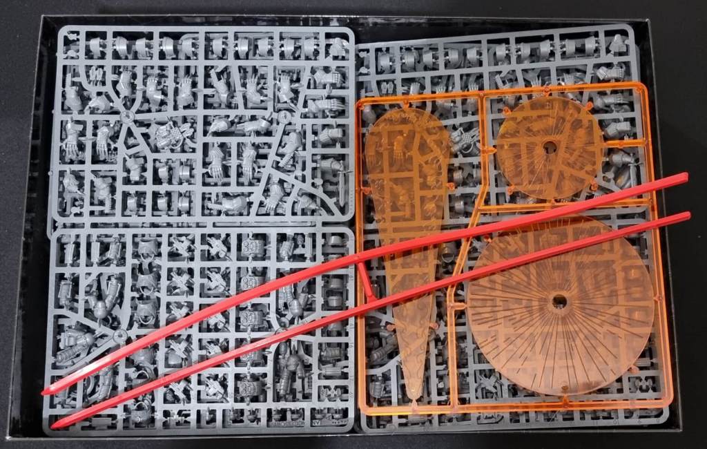 This box is huge and weighs quite a bit too. Inside you’ll find tons of content from templates, measurement sticks and also all the sprues! Inside you get: 40 Mk6 Space Marines, 10 Cataphractii Terminators, 2 Mk6 Praetors, a Contemptor Dreadnaught and a Spartan, all in plastic! It’s sooo much stuff.