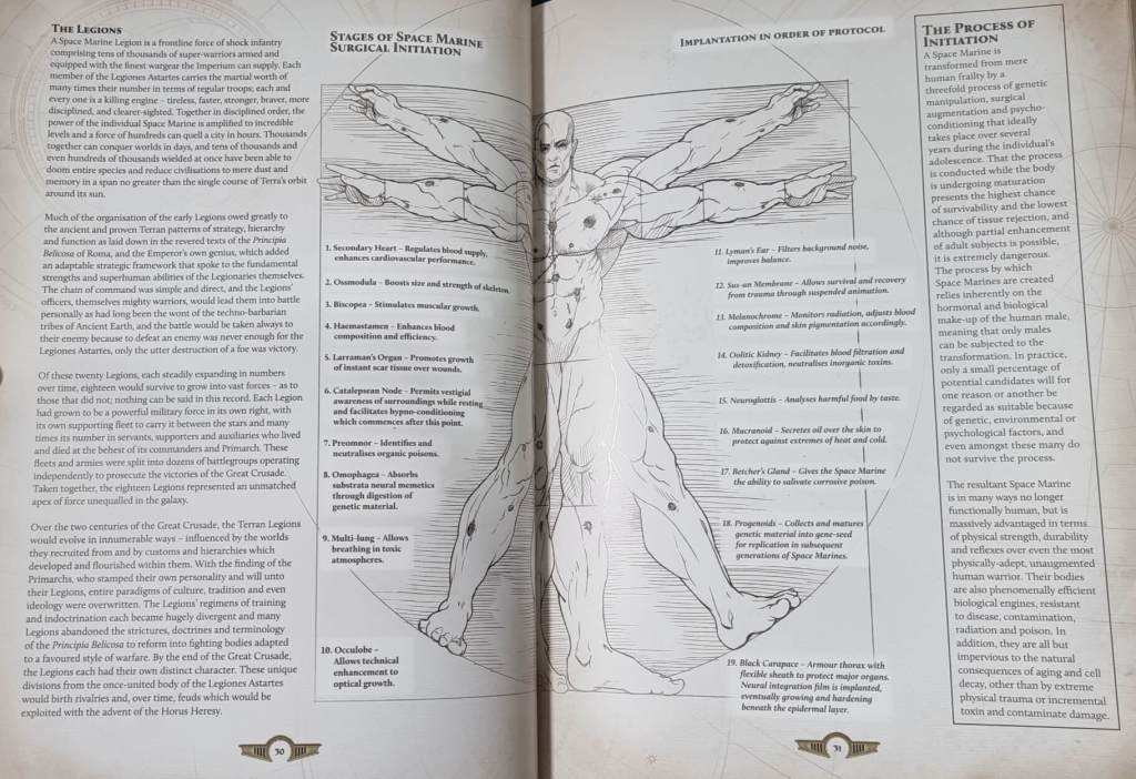 Inside this massive tome, the core rulebook contains a brief but expansive set of narrative content. It covers all the legions, factions involved in the conflicts as well as the origins of Space Marines and their armour marks. It’s pretty great overall and a good introduction for those new to the Horus Heresy.