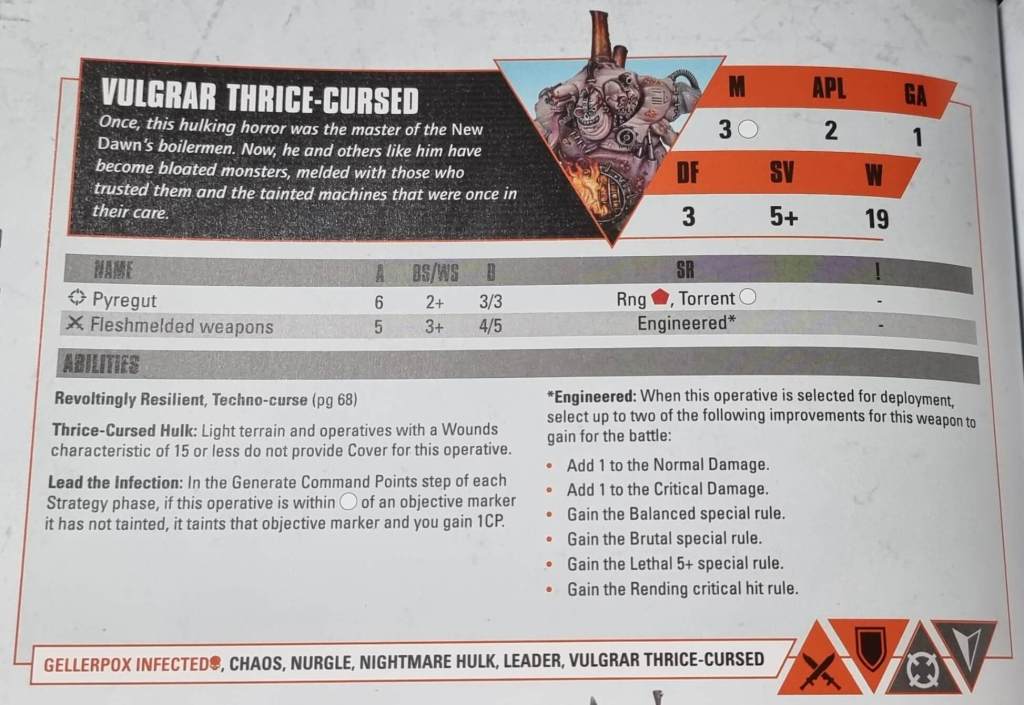 Your leader is a real beast and very customisable while also giving extra CP. All your Nightmare Hulks have the drawback of having mission actions cost more (except your leader) and cannot claim cover unless it is from heavy terrain so light terrain does nothing. Let’s hope there isn’t a game mode with only heavy cover.