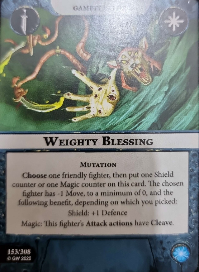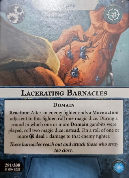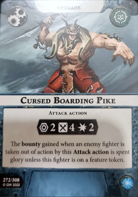 Cursed Boarding Pike is amazing and its downside is easily offset. Dark Parasites is also really good with its downside ignored when attacked by fighters that don’t have range 1 attack actions.