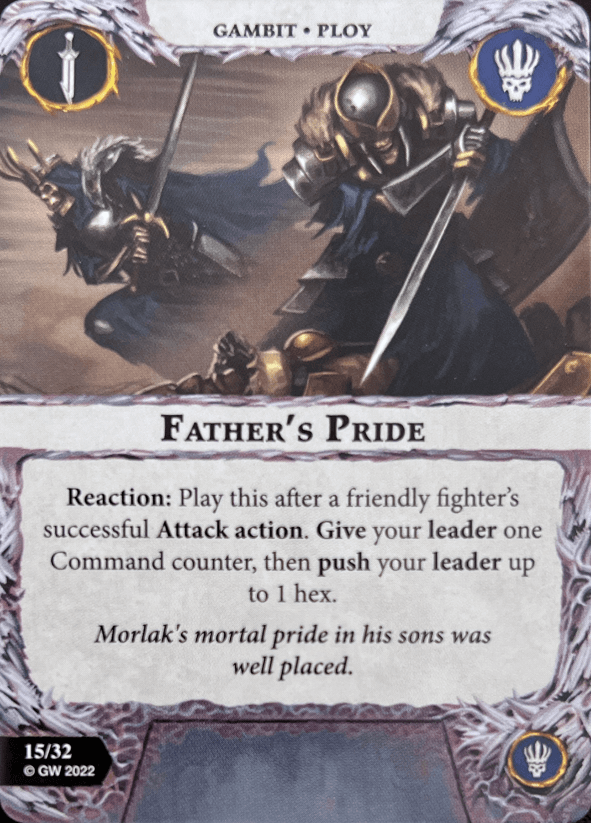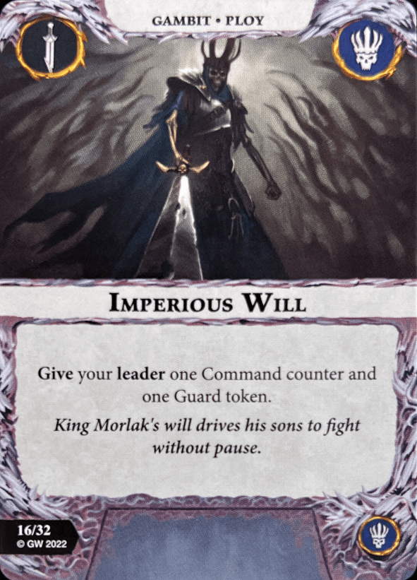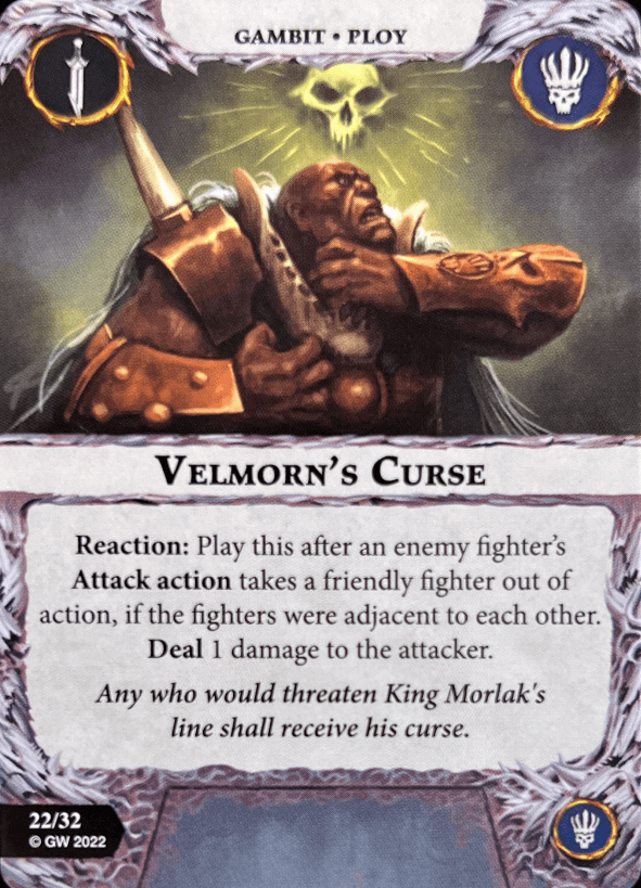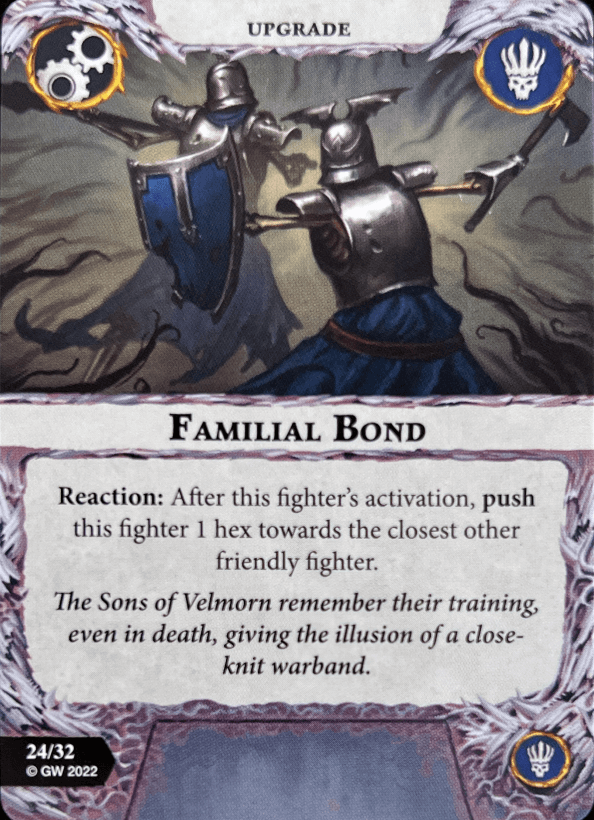 Sons of Velmorn are an alright warband. They excel at mid-board control and have an alright grindy-aggro power. Inspiring is rough to an extent but I love it. Their inspire ability and resurrection cards are solid too. Great as a starter warband. Plus they look amazing.
