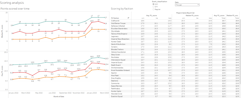 Next is something special for a future video I’m working on. Thanks to Hotsauceteddy, this is all the data from average scores in games of Kill Team. Basically, since Crit Ops launcher, the average points across the board has gone up whether you win, lose and draw. People have in general gone from 14 points on average winning to now 17, draws from 9 to 14 and losses from 6 to 11. Quite the huge jump when the max is 18 (excluding painting bonus). What does this mean? Well that’s for that future video although it was amazing Hotsauceteddy could get all this data as I didn’t think it was possible when we were talking about it.