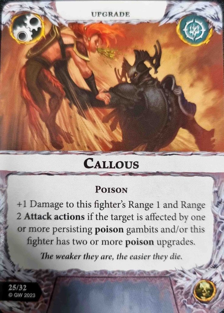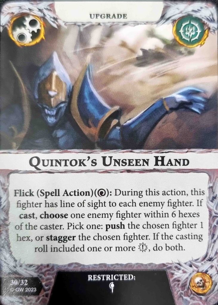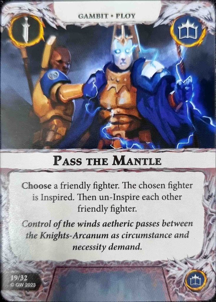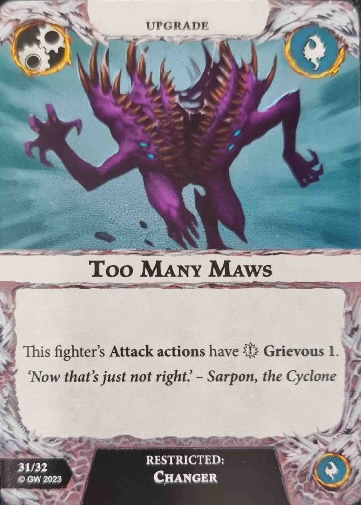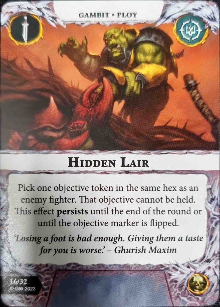 The plot card of this deck is very interesting. Basically after initiative you: inspire a fighter, stagger one, give one a guard token and push another. These apply to Changers so not your leader. You also have to resolve each in order, only stopping when you don’t have any fighters to apply the affect. This means if you had 1 Changer out of action, you’d stop at step 4 and so on. I like how staggering is at step 2. A great use of a plot card for a warband. Thematic and powerful.