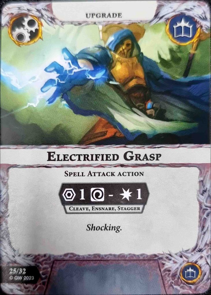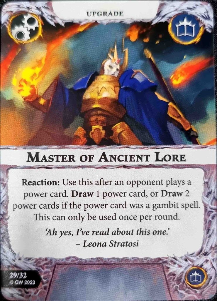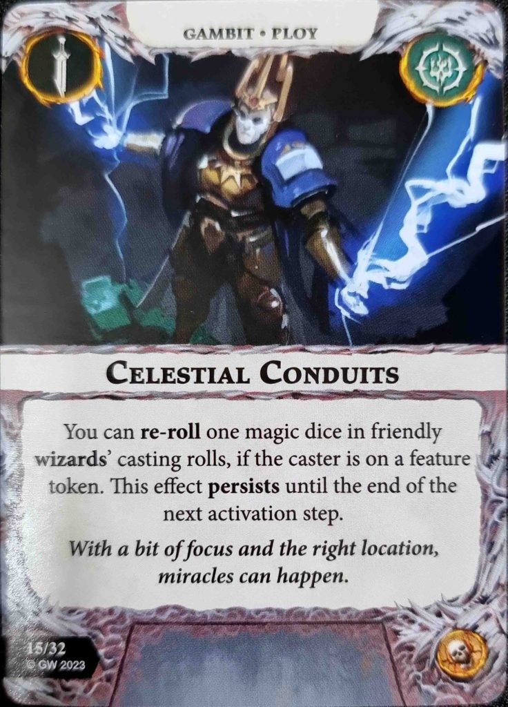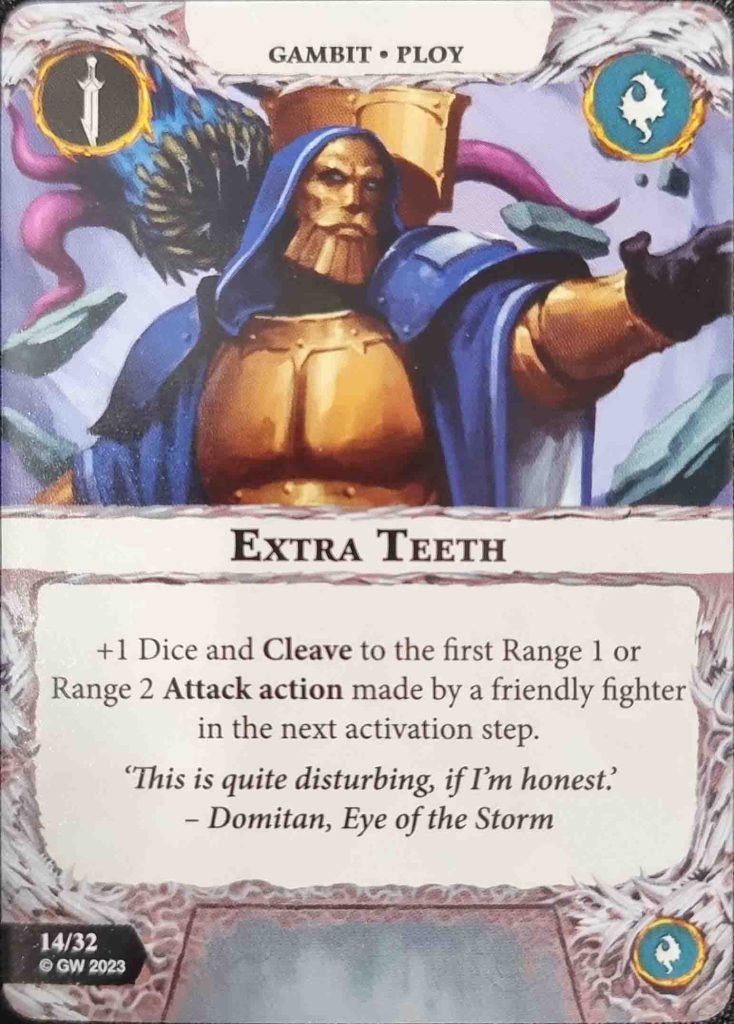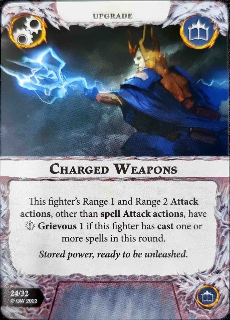 Ephilim is a level 1 wizard which goes to a level 2 while within 3 of 2 or more other friendly fighters. 2 dodge with 4 wounds is nice but the 2 ranged profiles are great to have, especially the range 4 Changebolt. Ephilim Inspired becomes an effective level 3 wizard which is amazing as well as the Warpgorge reaction that helps with great card draw. Plus Warpstaff becomes 3 smash.