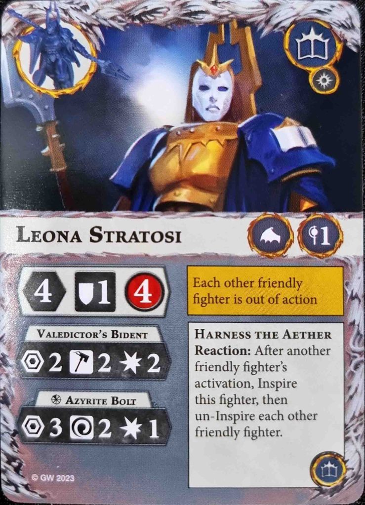 Domitan, like your other fighters, aren’t leaders until they inspire. He’s a level 1 wizard but I like how they made Azyrite bolt 2 channel dice and not based on wizard level, very nice. Harness the Aether is a shared reaction for the warband. Domitan Inspired becomes a level 2 wizard, becoming much better overall with damage output. Aethershock is also kinda alright. Oddly no 2 defence when inspiring.