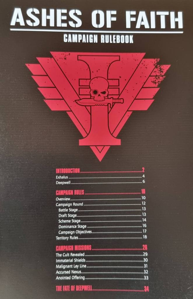 As the first narrative release for Kill Team, Ashes of Faith actually has a pretty in-depth campaign system. You get lots of cards split into several decks for both kill teams included in the box. These are divided into: Scheme cards, Conspirator cards, and Ruse cards. You also get Investigate and Persuasion cards too with a giant card sheet to track all your progress. You get (apparently re-usable) stickers you can place on this with your cards to track everything for your campaign.
