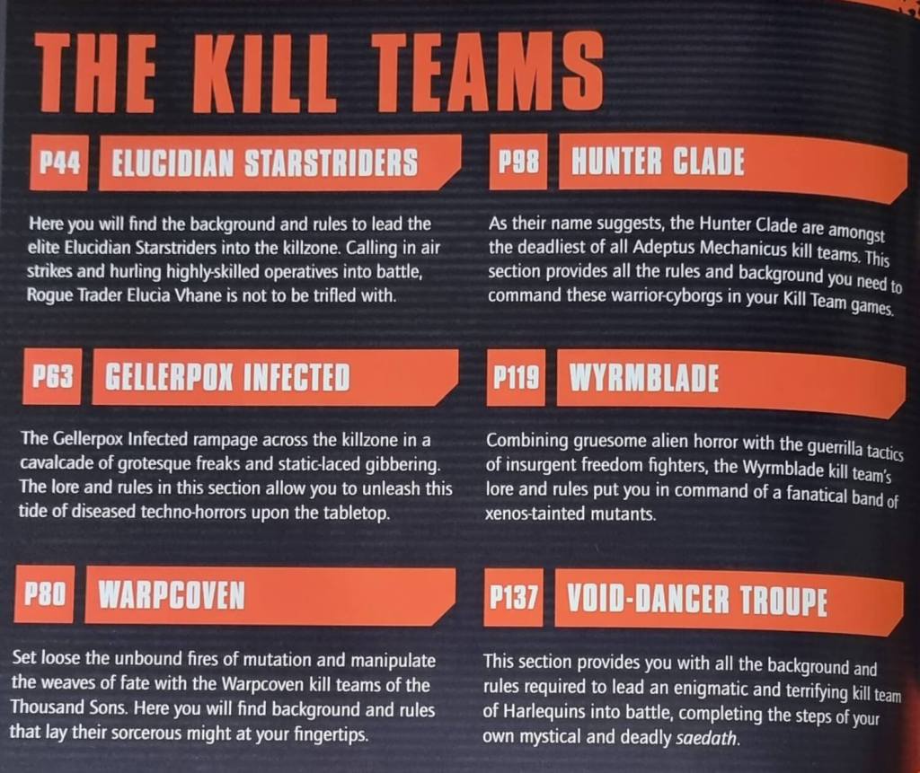 I can totally get behind the idea of this being the main format of annuals going forwards: collating all the kill teams and killzones from a single season in one book. We just really need an up-to-date digital release too, although this is something Kill Team needs in general.