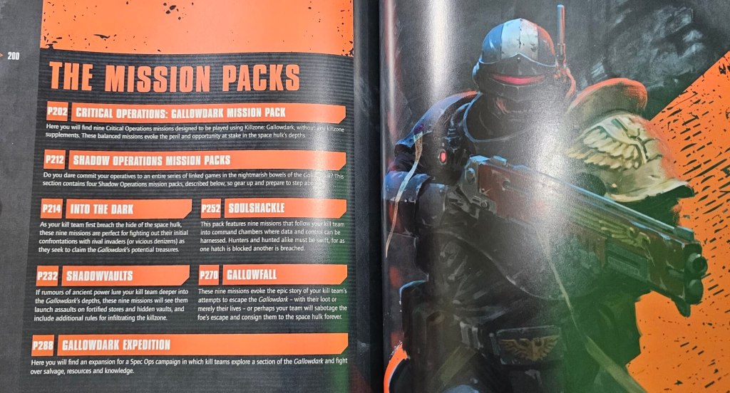 You also get all 9 competitive missions found in the Gallowdark books (which have been super-ceded by the online Crit Ops update) as well as all the narrative missions from every season 2 book. This is great, especially for narrative players who have access to all the terrain upgrade sprues.
